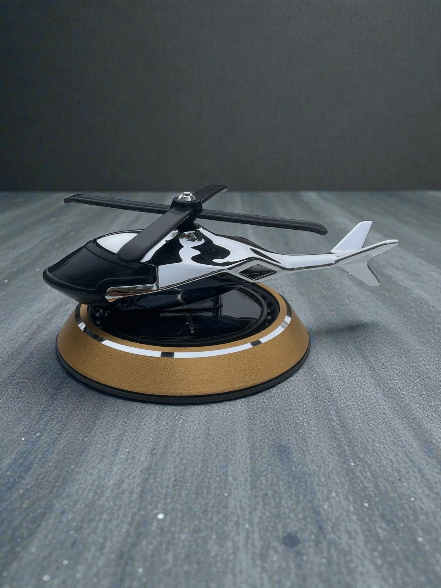 Add style and freshness to your car with the AutoPure Solar Helicopter Perfume. Powered by sunlight, the helicopter rotates automatically while releasing a pleasant, long-lasting fragrance—no batteries needed.